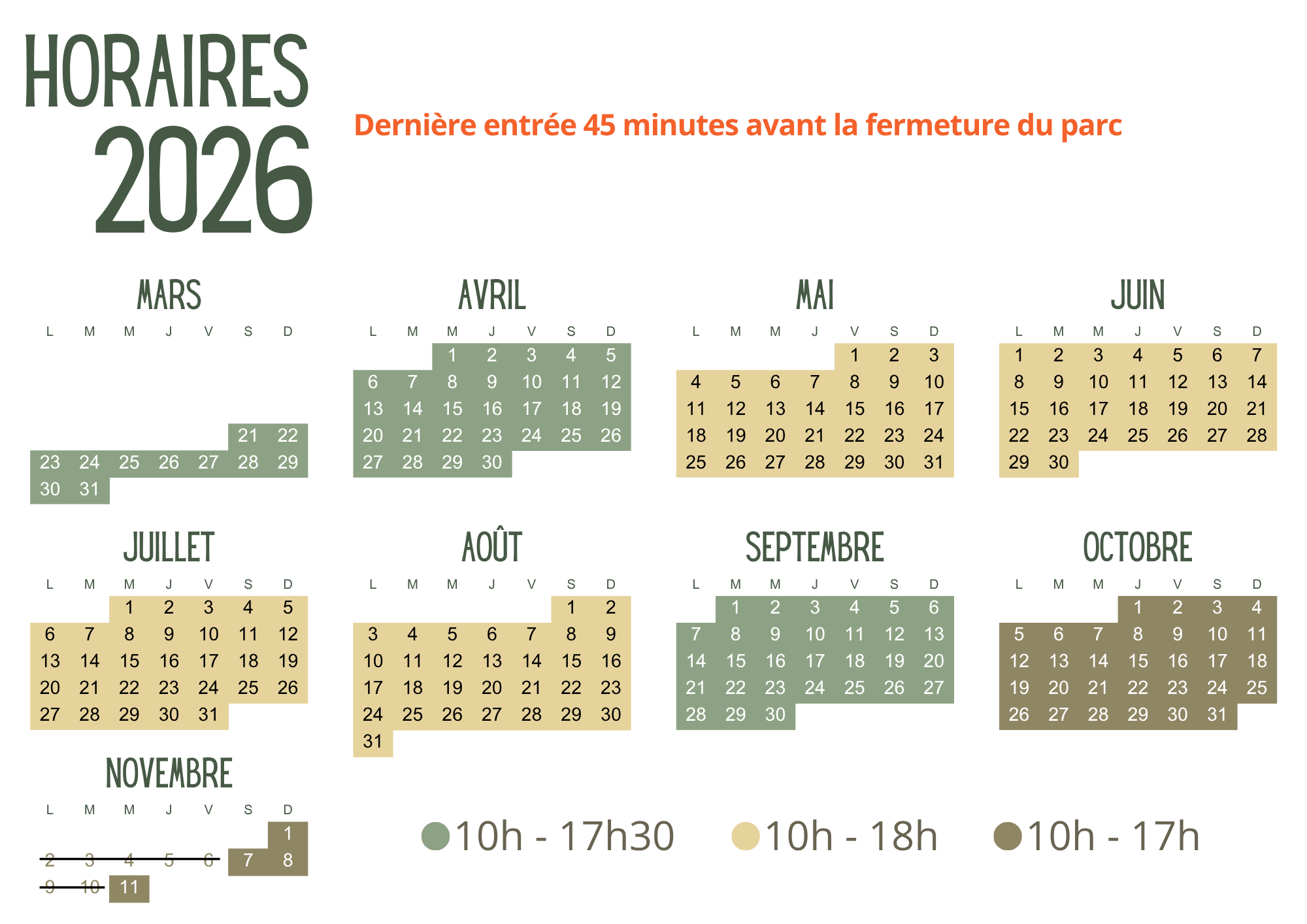 ⚠️ Fermeture temporaire du domaine des singes de 12h à 13h (dernière entrée à 11h30), sauf les week-ends, jours fériés et pendant les vacances scolaires (zone B).